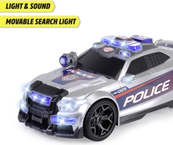 Stiilne politseiauto Street Force firmalt DICKIE TOYS pakub lastele realistlikku ja põnevat mänguelamust. Sellel on valgus- ja heliefektid, vastupidav konstruktsioon ja suured rattad sujuvaks sõiduks põrandal. Aktiveerimine toimub katusel oleva nupuga, mis süütab sinised ja punased tuled ning käivitab sireenid – ideaalne fantaasiarikkaks politseimänguks.