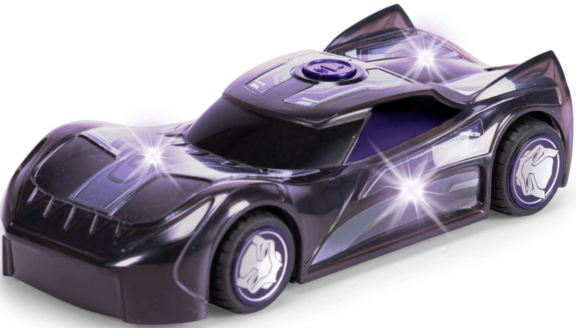 Alusta põnevat sõitu autoga MARVEL Black Panther. Maskimotiivide ja futuristlike joontega keredisain peegeldab täiuslikult armastatud kangelase stiili. Lilla nupu vajutamisel aktiveeruvad kogu kere valgustus ja autentsed helid nii autolt kui tegelaselt, pakkudes veelgi kaasahaaravamat mänguelamust.