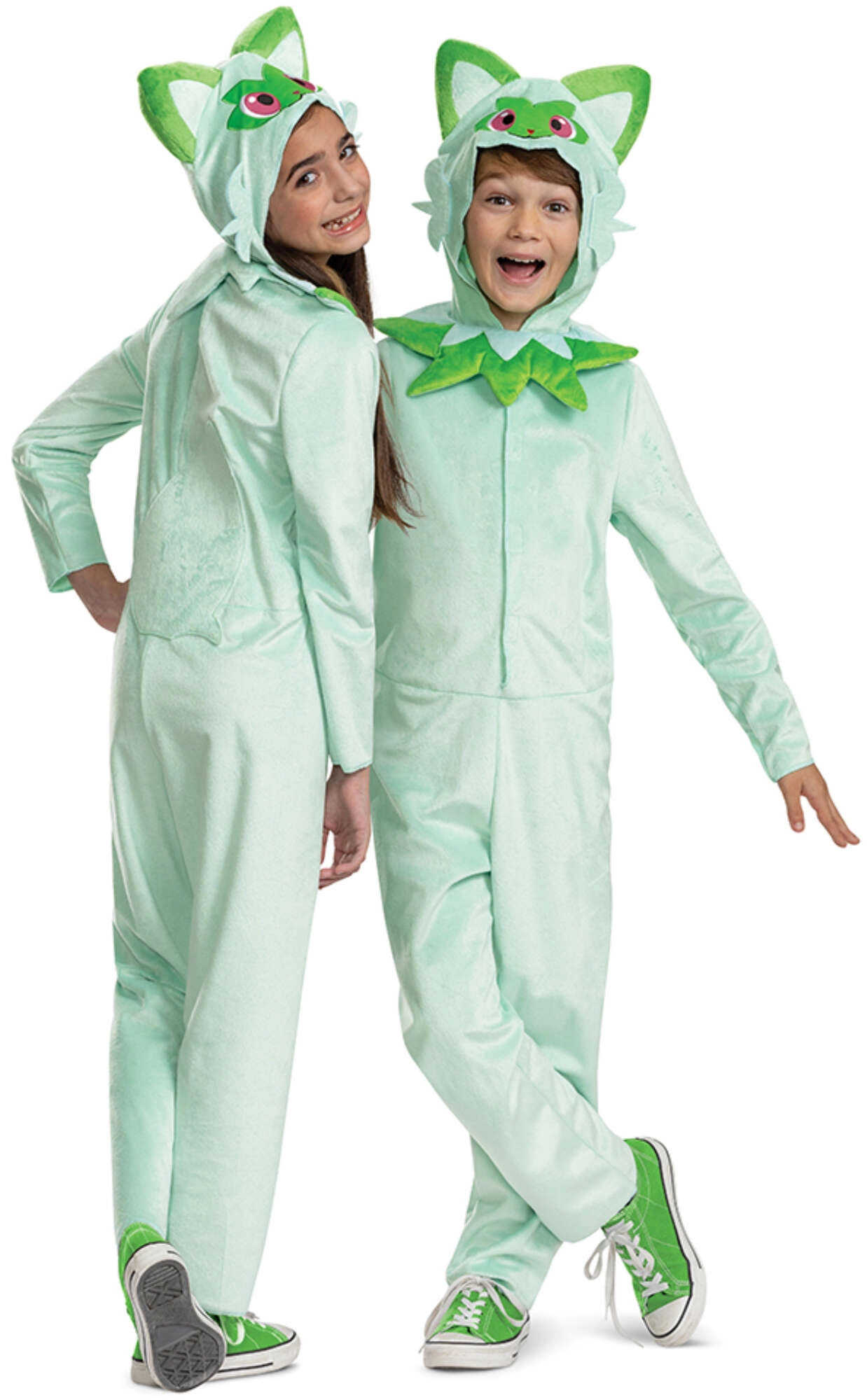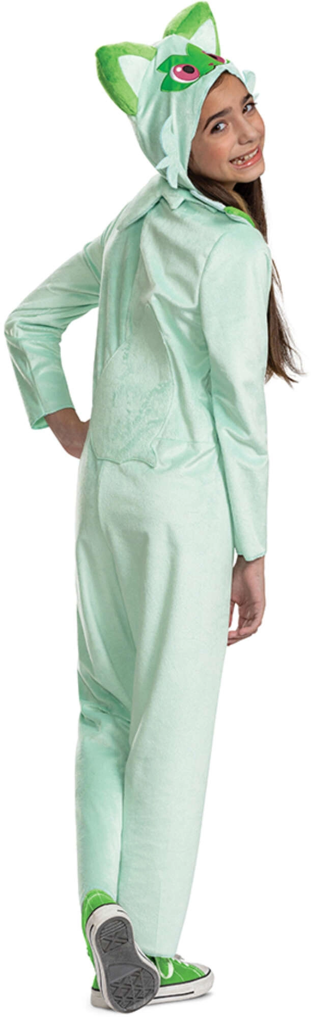 Integreeritud kapuuts suurte kõrvade, silmade ja lehekujulise kraega matkib ustavalt Sprigatito välimust ning lisab kostüümile võluva detaili.