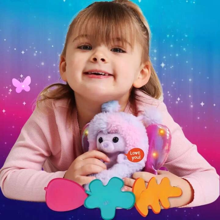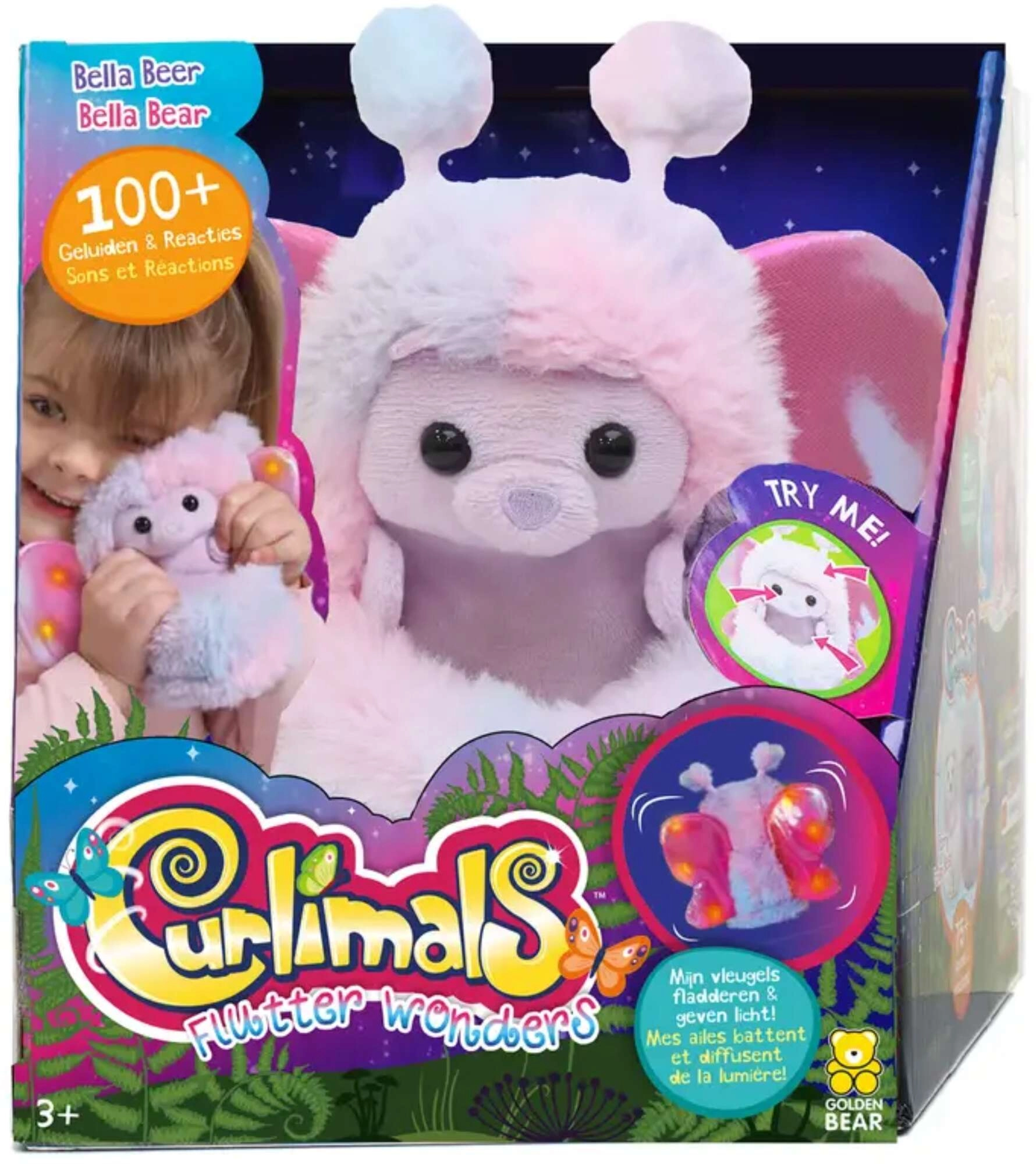 Armas karupoeg Bella Golden Beari Curlimals Flutter Wonders sarjast rõõmustab lapsi oma pehmete karvakeste, helendavate tiivakeste ja üle 45 heliga. Ta reageerib kõhule puudutusele, silitamisele ja ninale koputamisele, oskab naerda, saata musi ning ütleb armsaid fraase. Kompaktne 18 cm suurus sobib nii mängimiseks kui kaisutamiseks.