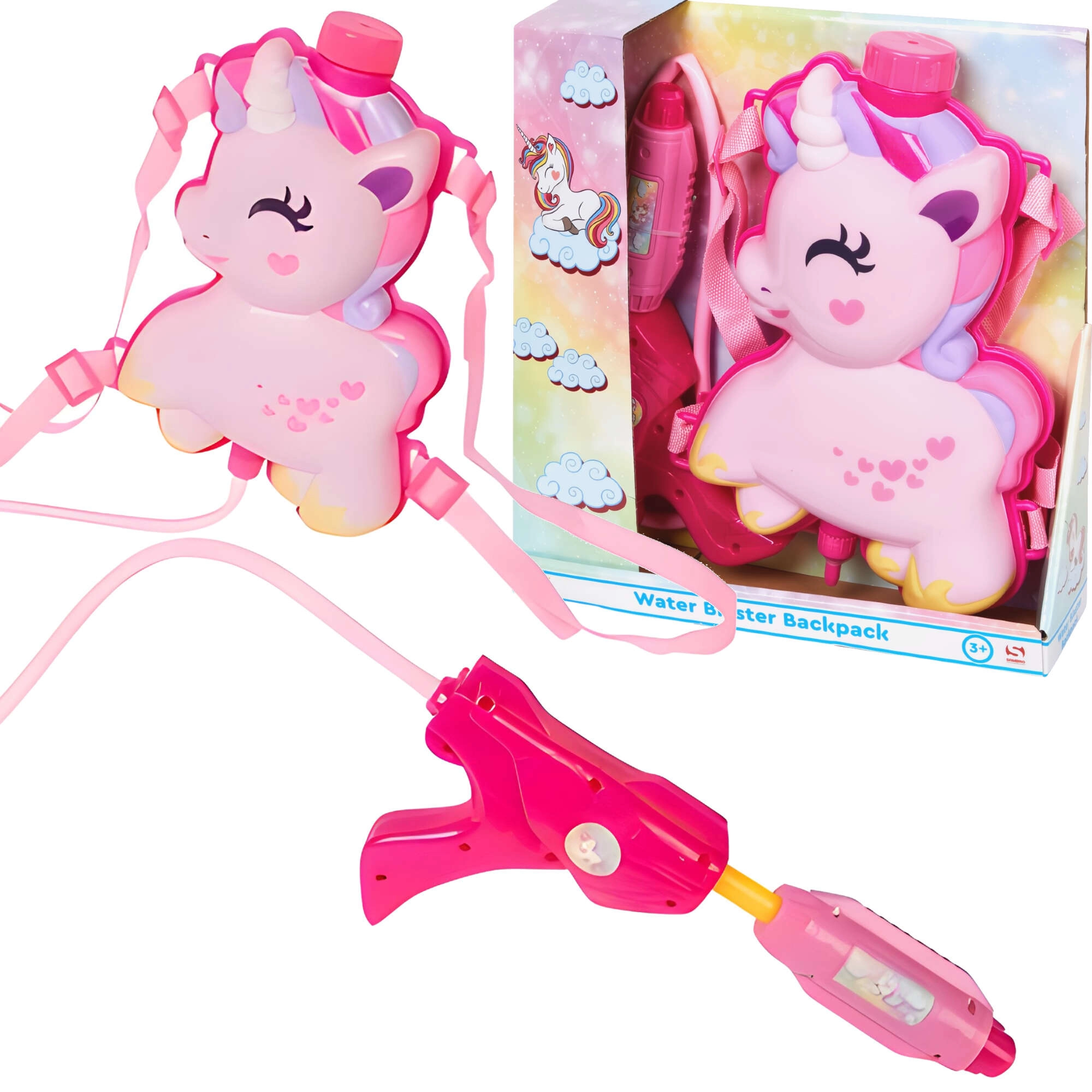 Armas ükssarviku-kujuline seljakott–reservuaar ja kerge käsiprits, mis on ühendatud painduva voolikuga, sobivad suurepäraselt aktiivseks mänguks aias, mänguväljakul ja vee ääres. Lapsed hindavad lihtsat täitmist ja mugavat kandmist, vanemad aga turvalist ja loovat ajaviidet värskes õhus.
