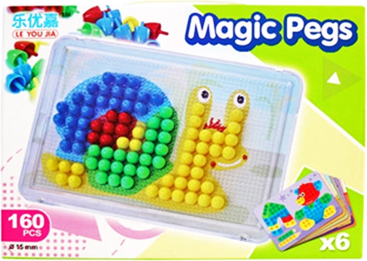 Komplekt pakub vahvat tegevust nii kodus kui ka lasteaias. Tugev alus hoiab tihvtid kindlalt paigal ning 6 pildilise šablooni valik annab kiiret inspiratsiooni. Kõik osad on vastupidavast materjalist, mis peab vastu igapäevasele kasutusele.