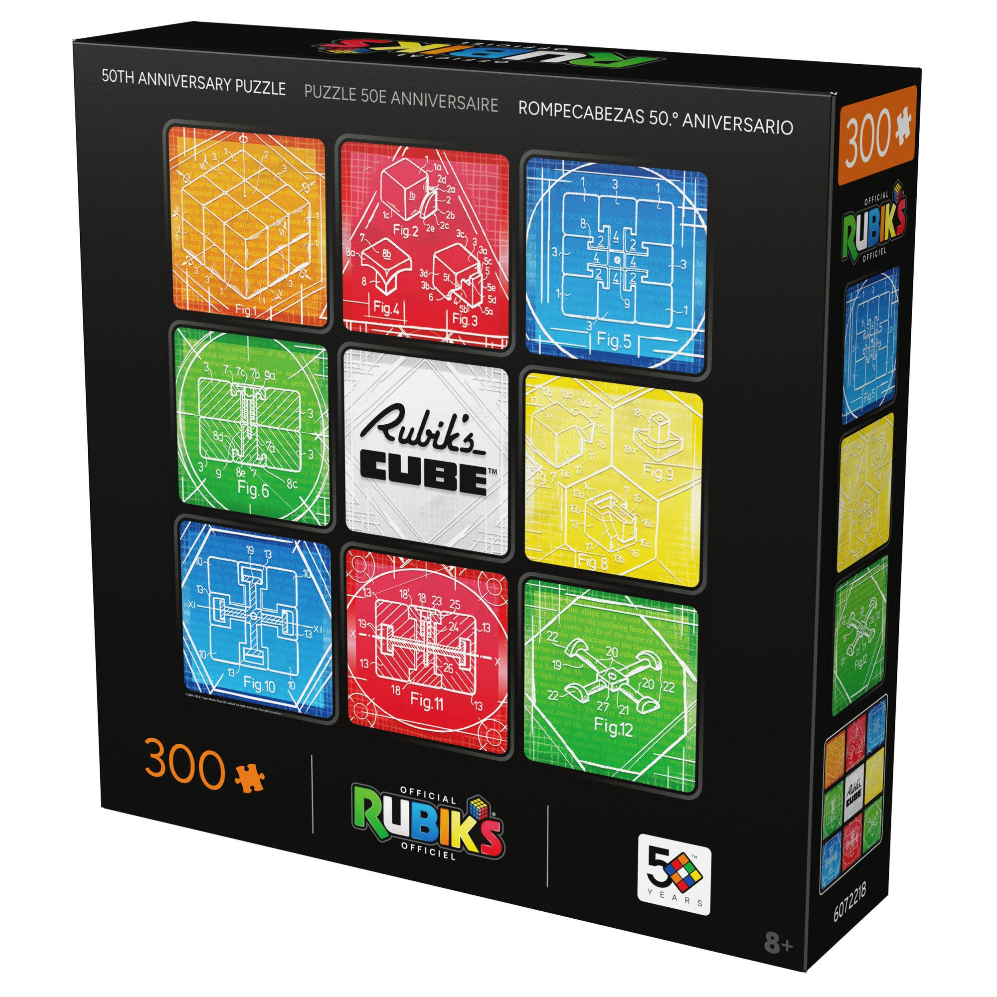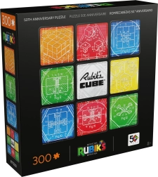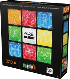 Tähista Rubiku kuubi 50. aastapäeva stiilse puslekomplektiga, milles on 300 tükki. Valmimisel saad ruudukujulise pildi 50,8 × 50,8 cm, millel on üheksa värviplokki legendaarse 3×3 kuubi ainetel, täiendatud tehniliste illustratsioonide ja ikoonilise RUBIK’S CUBE logoga. Komplektis on ka plakat lihtsamaks kokkupanekuks ja efektseks eksponeerimiseks.
