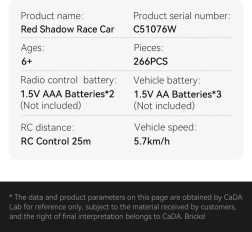 Pane kokku oma RC võidusõiduauto CaDA mõõtkavas 1:20 ja naudi sõitu kiirusega kuni 5,7 km/h. Komplektis on 266 detaili, modernne disain atsiinsinises toonis ja Dual Mode juhtimine – kas 2,4 GHz puldiga või Bluetoothi rakendusega, milles on 4 juhtimisrežiimi ja üle 25 m ulatuv levi. Suurepärane kingitus loovatele ehitajatele ja kiirete autode fännidele.