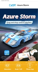 CaDA AZURE STORM ühendab loova ehitamise ja kiire RC-sõidu. Pärast kokkupanekut saad detailse, aerodünaamilise kujuga võidusõiduauto läbipaistva kokpiti ja sportlike kleepsudega – valmis põnevateks sõitudeks nii toas kui õues. Juhtimine on intuitiivne ja stabiilne tänu 2,4 GHz ja Bluetoothi tehnoloogiale.