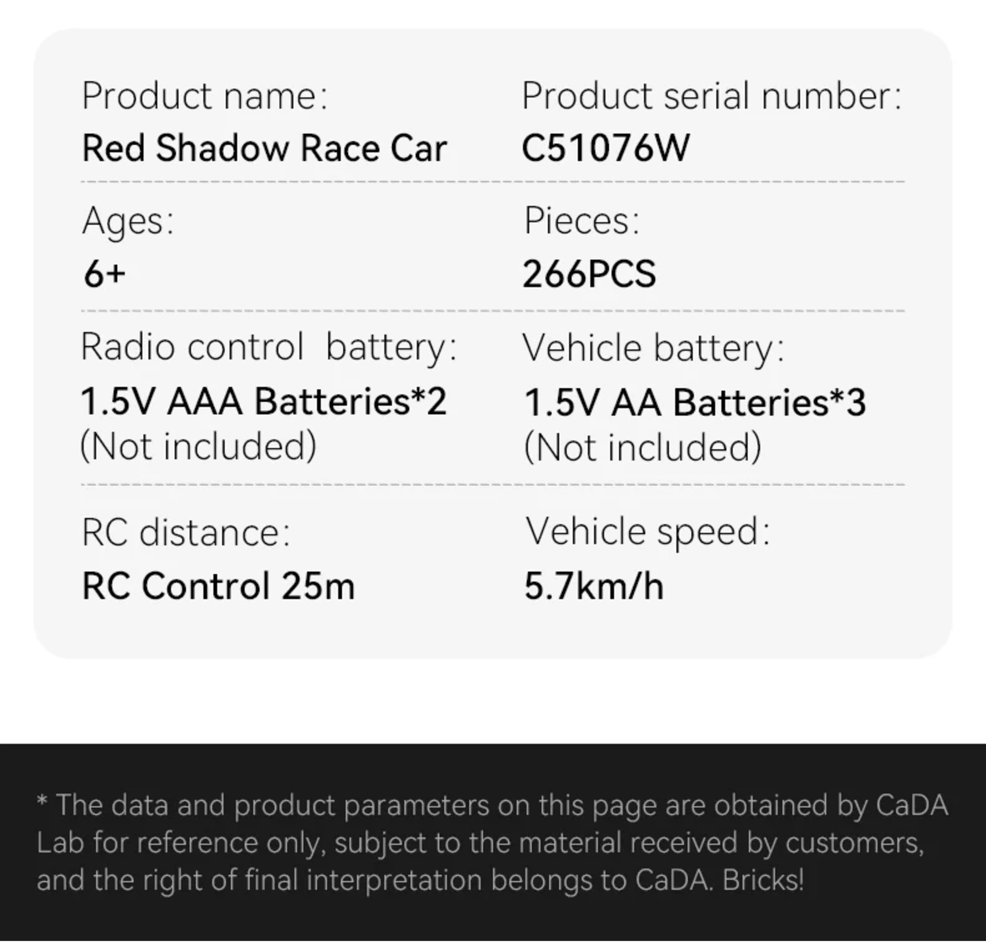 Tugev konstruktsioon, detailne välimus ja ühilduvus teiste CaDA komplektidega. Arendab peenmotoorikat ja loovust.