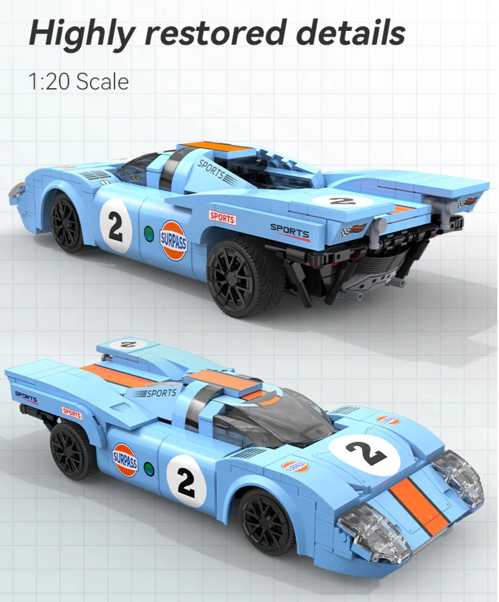 - Võidusõidu prototüübi disain – atsiinsinine keredisain, sportlikud detailid.
