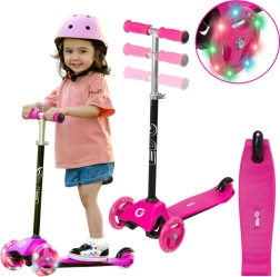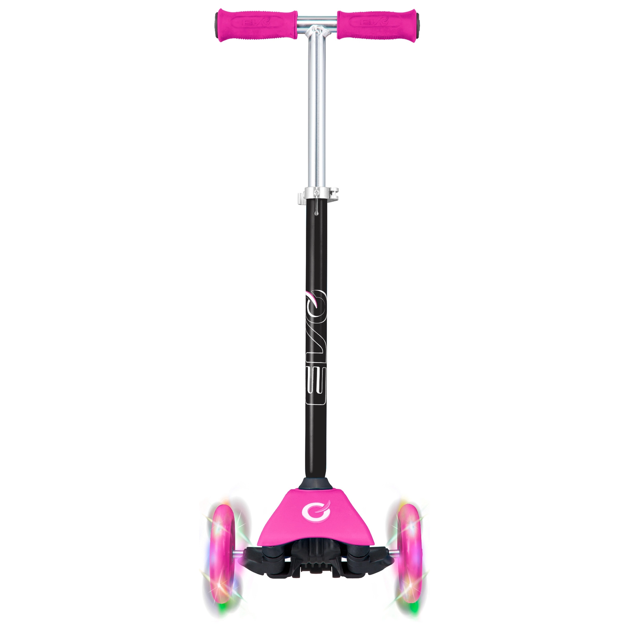 Kerge ja stabiilne laste tõukeratas EVO Mini Cruiser kolme rattaga lihtsaks tasakaalu õppimiseks. Pakub valgustusega LED-rattaid, kaldega (balanss) juhtimist, kõrguse järgi reguleeritavat lenksu ja tagumist jalapidurit. Roosa värvilahendus paelub väikseid sõitjaid, samas kui vaikne sõit ja lai astmelaud tagavad mugavuse ja ohutuse.