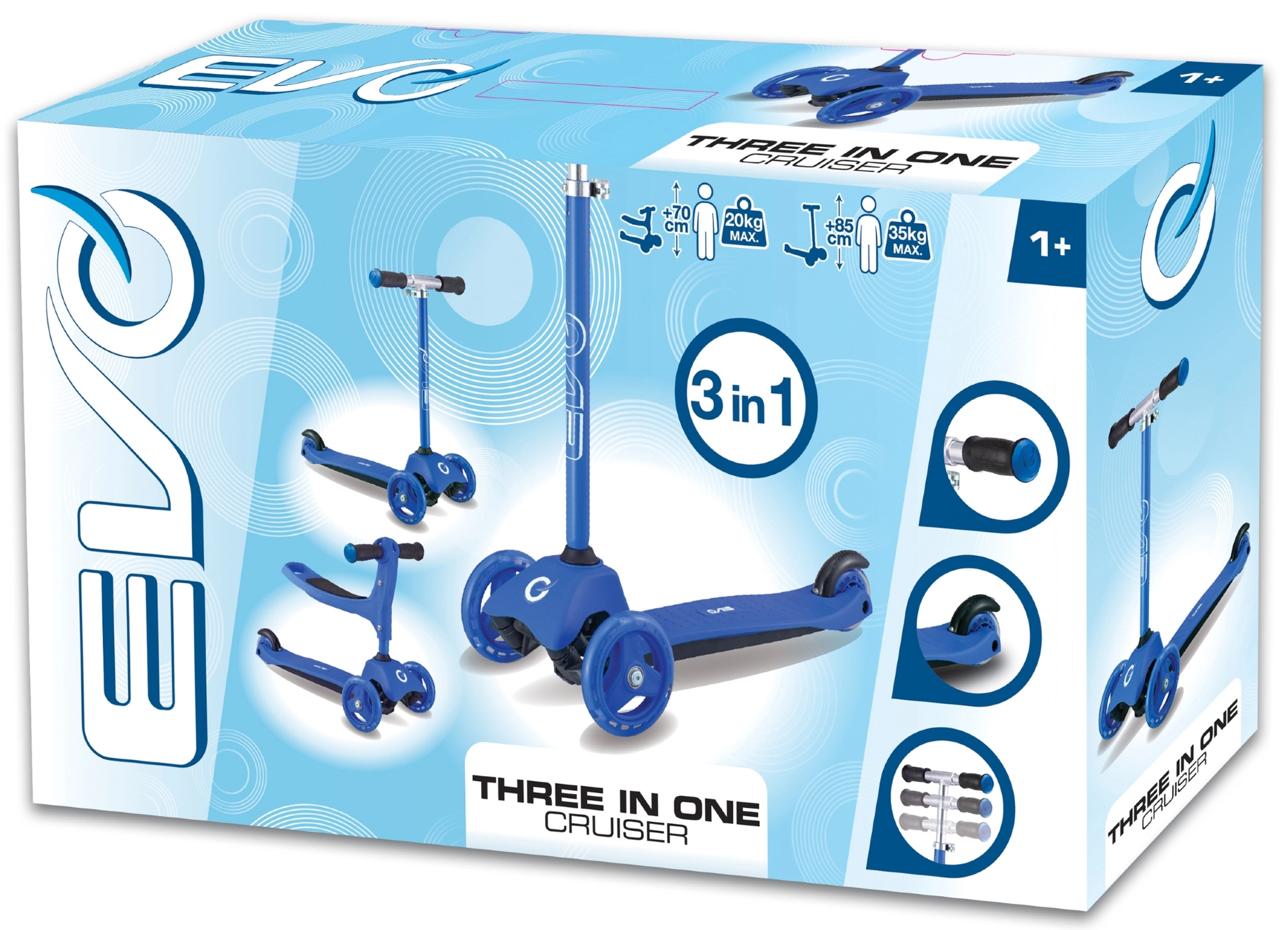 EVO 2-ühes tõukeratas kasvab koos lapsega: alustage istmega sõiduki režiimis kindlaks stardiks ja liikuge hiljem üle klassikaliseks kolmerattaliseks tõukerattaks. Kaks suurt esiratast tagavad suurepärase stabiilsuse, lean-to-steer tüüpi juhtimine toetab loomulikku tasakaalu õppimist ning libisemiskindel astelaud lisab kindlust igal meetril.