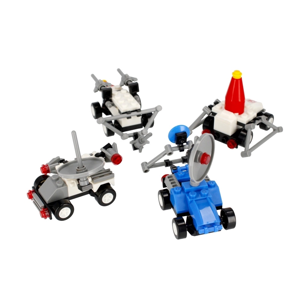 Koosta oma mini-flotill roveritest, raketikärudest ja uurimismoodulitest. Iga mudel on loodud kiireks kokkupanekuks ja vastupidavaks mänguks, et lapsed saaksid kohe kosmosemissioonile asuda. Tänu kompaktsetele mõõtmetele sobib komplekt suurepäraselt ka kaasavõtmiseks.