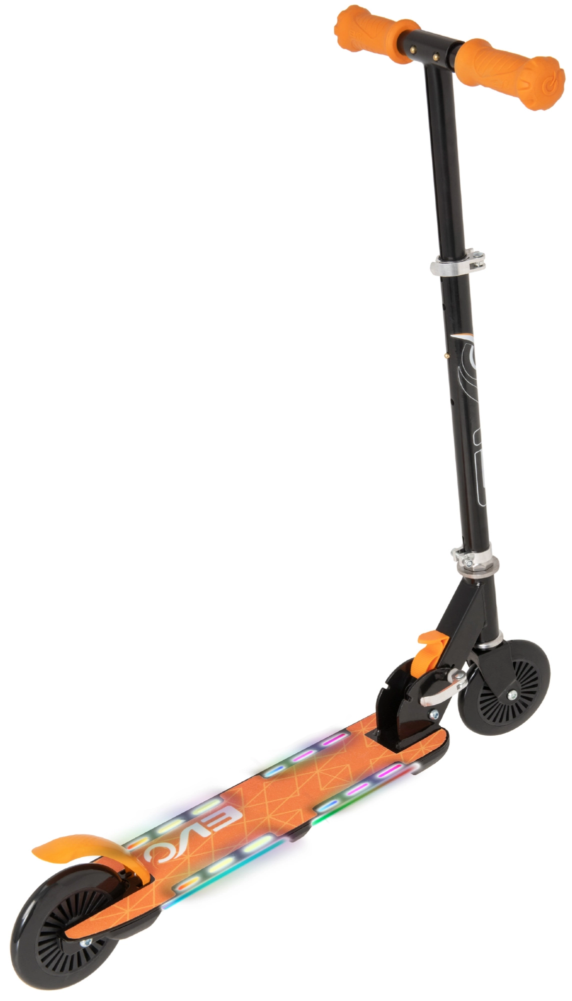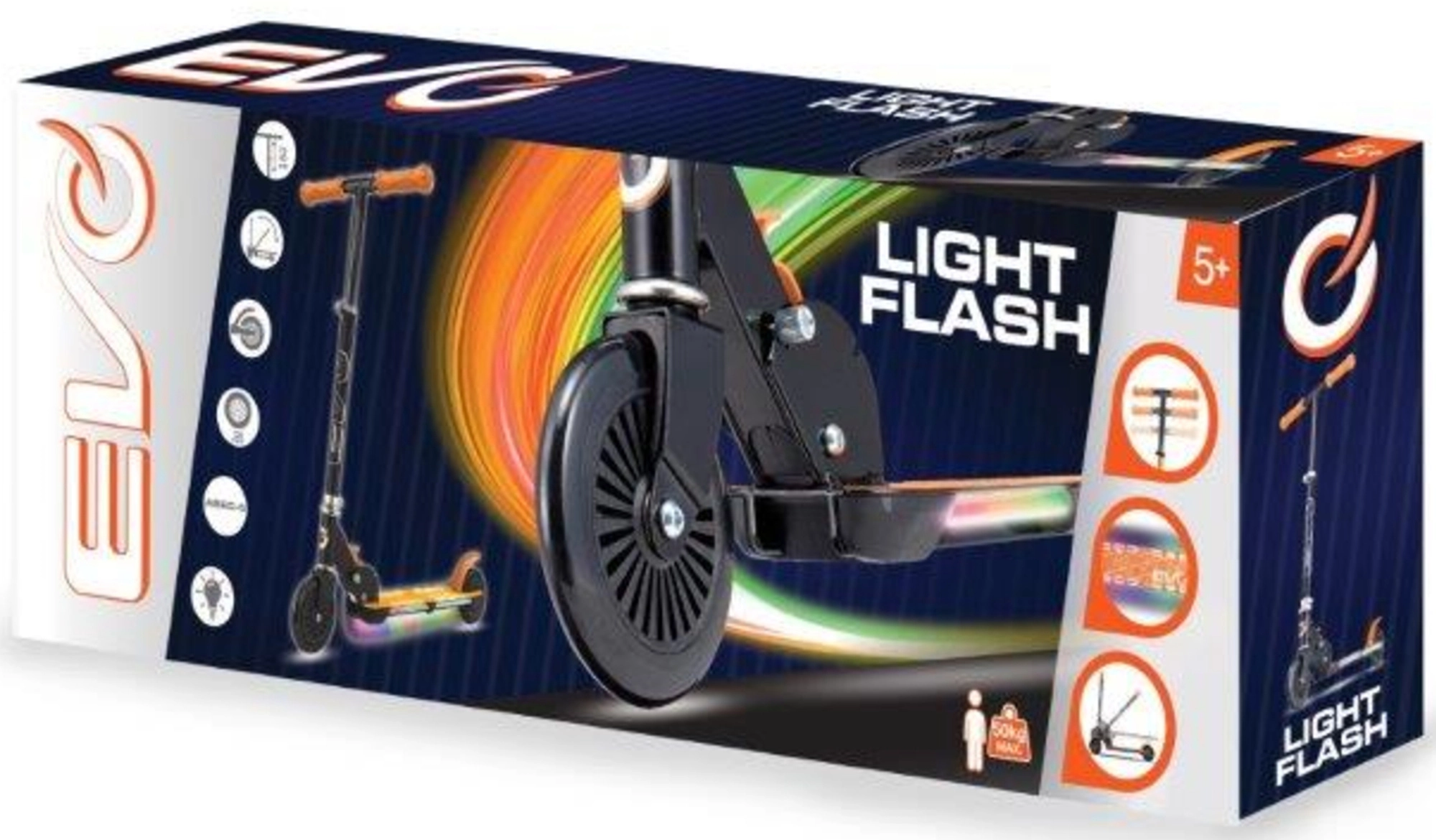 EVO Light Flash tõukeratas on suurepärane valik väikestele sõitjatele, kes soovivad stiili, turvalisust ja lõbu. Värvilise LED-valgustusega platvorm parandab nähtavust ja loob atraktiivse efekti, samas kui kerge kokkupandav konstruktsioon lihtsustab hoiustamist ja transporti. Reguleeritav lenksukõrgus (u 72–82 cm) tagab hea ergonoomika eri kasvuga lastele.