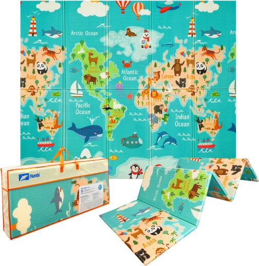Avastage avar ja pehme HUMBI mängumatt kvaliteetsest XPE vahust mõõtudega 200 × 180 × 1 cm. See on kahepoolne – ühel pool värviline maailmakaart, teisel linnatänavad – ning pakub turvalist, veekindlat ja kergesti puhastatavat pinda imikutele ja lastele sünnist alates. Tänu voltimiskonstruktsioonile ja praktilisele kotile komplektis sobib suurepäraselt lastetuppa, elutuppa ja aeda. Kahjulikest ainetest vaba, CE, EN71 ja REACH sertifikaadid vanemate meelerahuks.