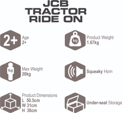 JCB Fastrac jooksuratas rõõmustab väikseid ehitusmasinate fänne oma realistliku välimuse ja vastupidava teostusega. Tänu jalajõul liikumisele harjutavad lapsed tasakaalu ja koordinatsiooni, samal ajal kui laiad rattad ja stabiilne konstruktsioon tagavad turvalise sõidu. Praktiline panipaik istme all ja signaal teevad sõidu veelgi lõbusamaks.