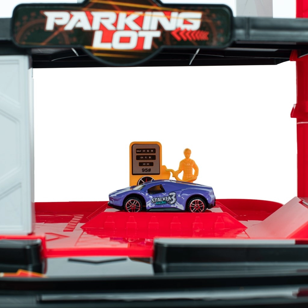 Pöördnupp tõstab platvormi autoga korruste vahel. Lapsed harjutavad peenmotoorikat ja naudivad realistlikku parkimist ning liikumist.