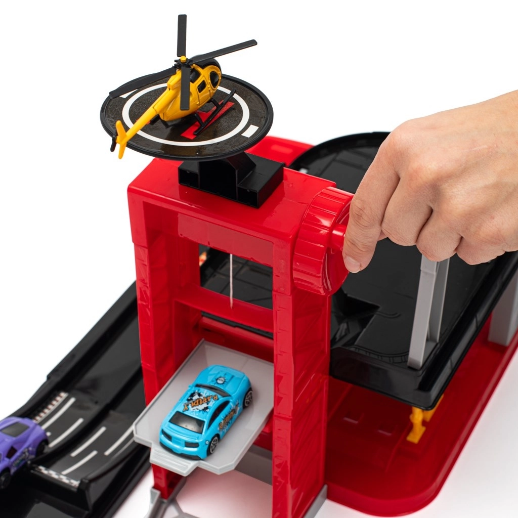 - Parkla liftiga ja rampidega, tankla, helipad, 4 metallist autot, helikopter