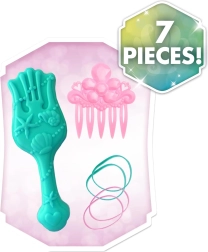 Komplektis on kammimispea, juuksehari, kamm ja juuksekummid – kõik, mida lapsed vajavad kaunite soengute loomiseks.