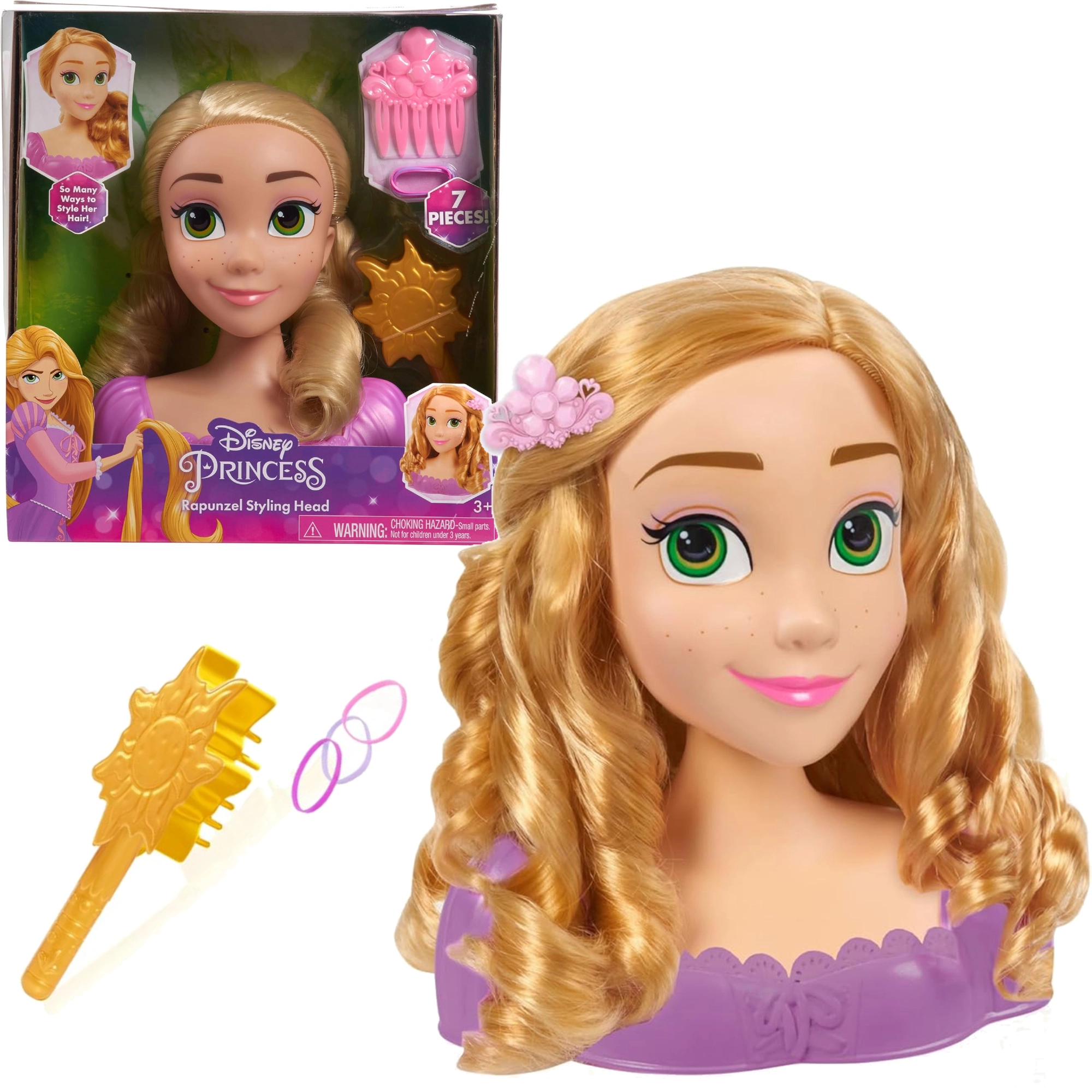 RAPUNZELI stiilipea ikooniliste, pikkade blondide juustega pakub lastele lõputut rõõmu kammimisel, patsitamisel ja kaunistamisel. Stabiilne alus ja kvaliteetne teostus tagavad mugava ja turvalise mängu, samal ajal kui muinasloost inspireeritud aksessuaarid äratavad iga lapse fantaasia ellu.