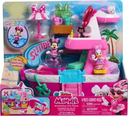 Komplekti kuuluvad figuurid MINNIE, DAISY ja armas koerake Snowpuff, keda saab istutada toolidesse, panna kiikuma või lasta liurennist alla. Tuled ja helid ning särav “diskokuul” lisavad igale stseenile võluva atmosfääri, samal ajal kui külm vesi basseinis aktiveerib maagilise värvimuutuse.