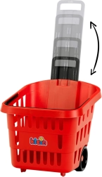 See punane laste ostukäru matkib tõetruult päris poekäru ning innustab loovat müüja- ja kliendimängu. Konstruktsioon on kerge, kuid tugev ja vastupidav, nii et käru sobib igapäevasteks kodusteks „ostudeks” ja tundideks mängurõõmuks.