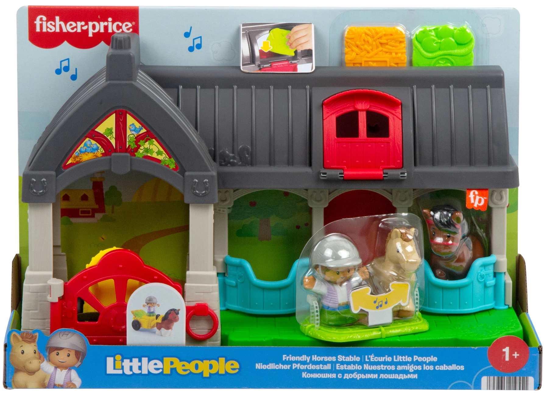 Lõbus Little People tall toob laste ette loomade maailma. Kaks eraldi ala avastamiseks, avatavad boksiväravad ja eriline „söötmisava” muudavad iga mängu uueks looks. Lapsed saavad rakendada suurema hobukese järelkärusse, vedada „heina” ja hoolitseda oma hobukeste eest koos hooldaja figuuriga.