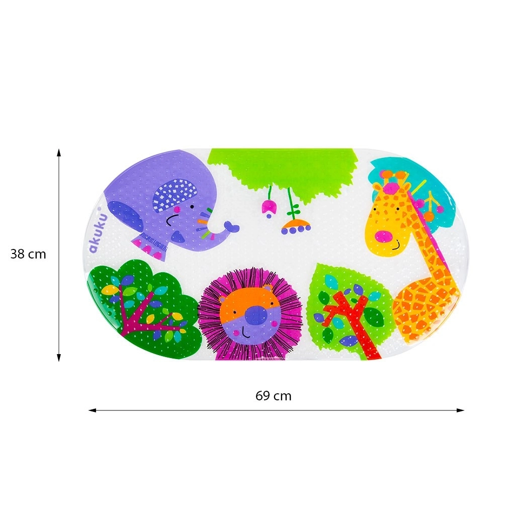 Ohutu ja lõbus vanniaeg lastele ja vanematele. Akuku libisemisvastane matt iminappadega tagab stabiilsuse vannis ja duši all, on valmistatud kvaliteetsest ftalaadivabast PVC-st ning rõõmsavärviline trükk teeb igapäevase hügieeni meeldivamaks. Suurendatud ohutus, kindel nakkumine ja lihtne hooldus ühes.