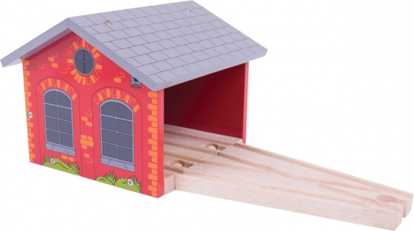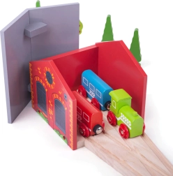 Praktiline puidust depoo kahele rongile on ideaalne lisand igale puidust rongirajale. Kompaktne teostus koos sissepöörava rööpmega võimaldab hõlpsalt parkida kuni kaks rongikoosseisu, hoida korra majas ja laiendada mänguvõimalusi. Valmistatud kvaliteetsest puidust, mis vastab Euroopa ohutusstandarditele ning arendab laste kujutlusvõimet ja oskusi. Ühilduv enamiku puidust rongiradadega, vastupidav teostus ja lihtne integreerida rööbastikku.