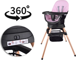 See multifunktsionaalne 6-ühes tool kohandub hõlpsalt iga lapse arengu etapiga – esimestest lisatoitudest kuni iseseisva istumise ja mängimiseni. Tänu 360° pöörlevale istmele 8 lukustusasendiga ja turvalistele viiepunktilistele rihmadele pakub see maksimaalset mugavust ja turvalisust. Eemaldatav vormitud kandik puhastub hetkega voolava vee all või nõudepesumasinas.
