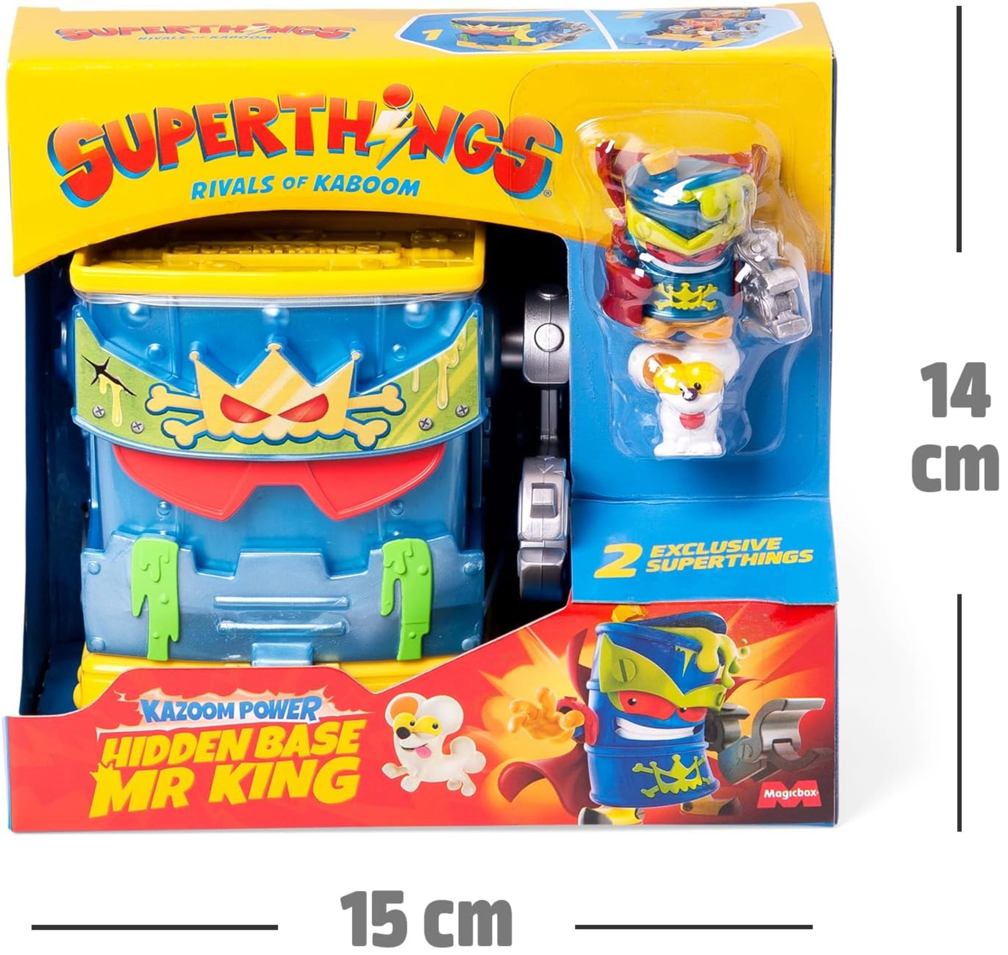 Sukeldu SuperThings maailma ja avasta MR KINGI salajane baas, mis on inspireeritud sarjast Kazoom Power. Mängukomplekt pakub varjatud käike, loogikamehhanisme ja eksklusiivseid figuure Mr King ja Ron Ron. Ideaalne lastele, kes armastavad interaktiivseid seiklusi ja mõistatusi, mis arendavad loogilist mõtlemist.