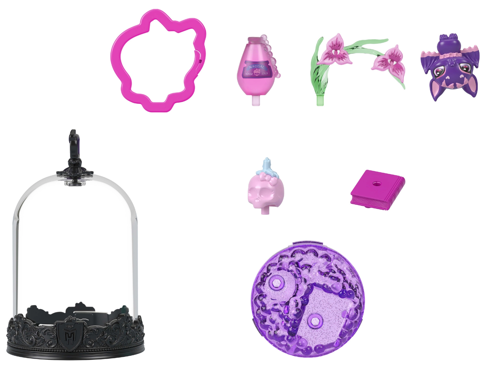 Astuge stiilsesse MONSTER HIGH maailma võtmehoidjaga, mis ühendab mängu, loovuse ja eksponeerimise ühes. Läbipaistva kupli sees loote Count Fabulous’ile – ikoonilisele nahkhiirele – oma stseeni temaatiliste kaunistustega. Valmis terraariumi saate lihtsalt sulgeda ja klõpskinnitusega külge panna, et teie väike kaaslane saaks teiega kõikjale kaasa tulla.