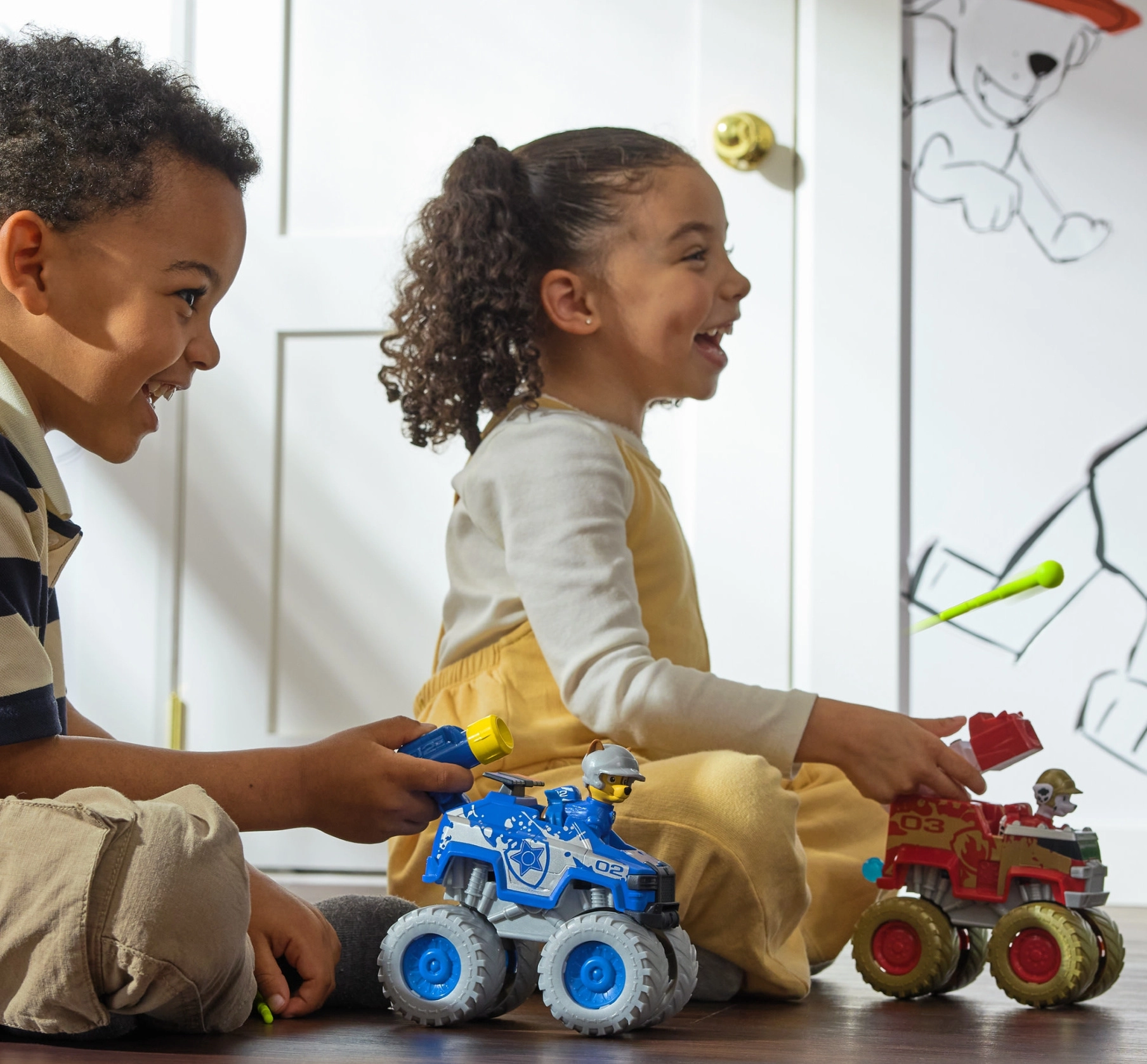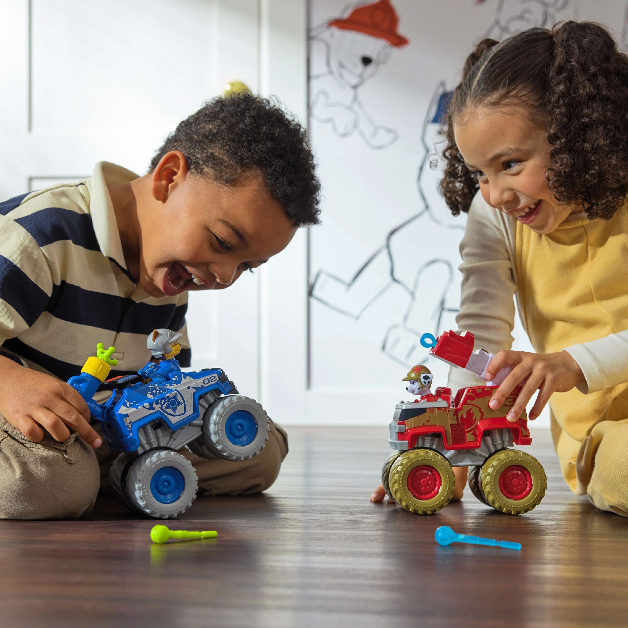 Rescue Wheels maastikuautod SPIN MASTERilt pakuvad 3+ aastastele lastele kaasahaaravaid seiklusi PAW Patroli kutsikatega. Marshall – lõbus dalmaatslane tuletõrjuja varustuses – ja Chase – vapper saksa lambakoer politseivarustuses – istuvad oma sõidukitesse, valmis iga päästeaktsiooni jaoks.