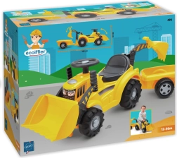 See tugev traktor koos käruga pakub lastele palju mänguvõimalusi ja arendab motoorikat. Buldooseri kopa saab hõlpsalt vahetada ekskavaatori kopa vastu, nii et väikesed ehitajad saavad laadida, välja kallata ja vedada mänguasju vastavalt tujule. Tänu mugavale istmele koos peidutaskuga on pisiasjad alati käeulatuses.