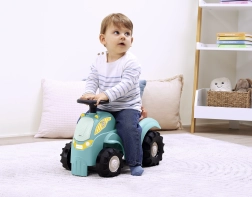 See türkiissinise/sinise värviga traktor-joonistaja pruuni istme ja massiivsete mustade ratastega on loodud kõige väiksematele sõitjatele. Tugev plastkorpus ja lai rattarööbe tagavad stabiilse ja ohutu sõidu, samas kui kompaktsed mõõdud teevad kasutamise mugavaks siseruumides nii vaibal kui ka siledal põrandal.