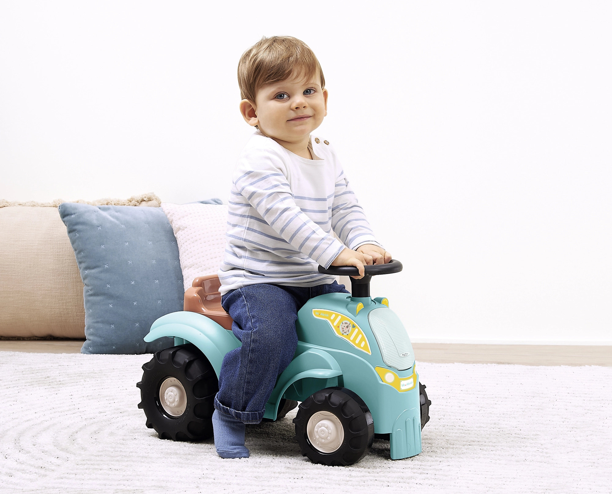 Brändi ECOIFFIER laste traktor-joonistaja on stabiilne ja kerge vahend esimesteks sõitudeks kodus ja siledal pinnal. See pakub tugevat plastkonstruktsiooni, laiu rattaid stabiilsuseks, pööratavat rooli lihtsaks juhtimiseks ning praktilist peidukohta istme all väikeste aarete jaoks. Ideaalne tasakaalu ja üldmotoorika arendamiseks 12–36 kuu vanustele lastele.