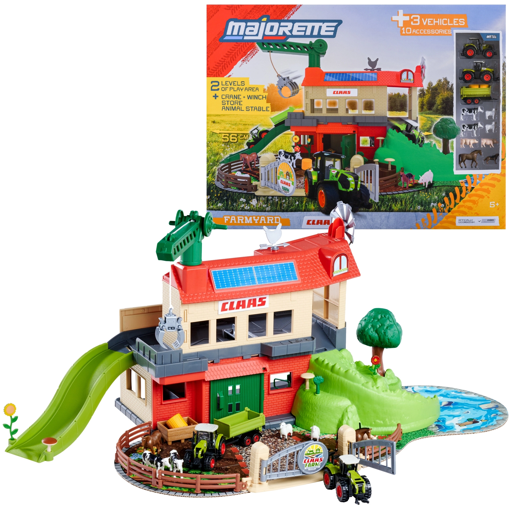 Suur CLAASi farm pakub lastele ehtsat maaelu kogemust. Kahekorruseline ehitis aida, rampide ja aedikute ning plokksüsteemiga kraanaga võimaldab tõsta heinapakke ja tarvikuid korruste vahel. Ametliku litsentsiga CLAASi mudelid rõõmustavad realistliku välimuse ja sujuva veeremisega.