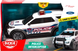 Politseiauto FORD INTERCEPTOR paistab silma detailse teostusega valges värvitoonis politsei tähiste ja efektselt kujundatud elementidega. Katusele paigutatud nupu vajutamisel aktiveeruvad valgus- ja heliefektid – punased ja sinised vilkurid ning realistlik sireen, mis ergutab laste kujutlusvõimet ja põnevat rollimängu.