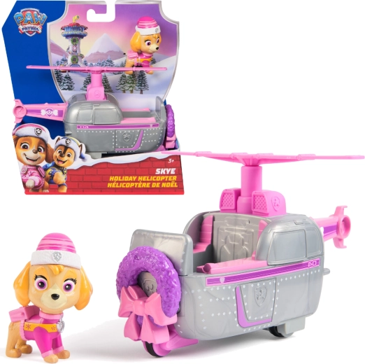 Alusta pühi päästemissioonidega Skye helikopteriga armastatud sarjast PAW PATROL. Komplektis on detailne Skye figuur talveriietuses ja roosa‑hall helikopter pöörleva rootori ja vabalt veerevate ratastega, et põrandal sujuvalt liikuda. Ideaalne loovaks mänguks ja pühadekingiks.