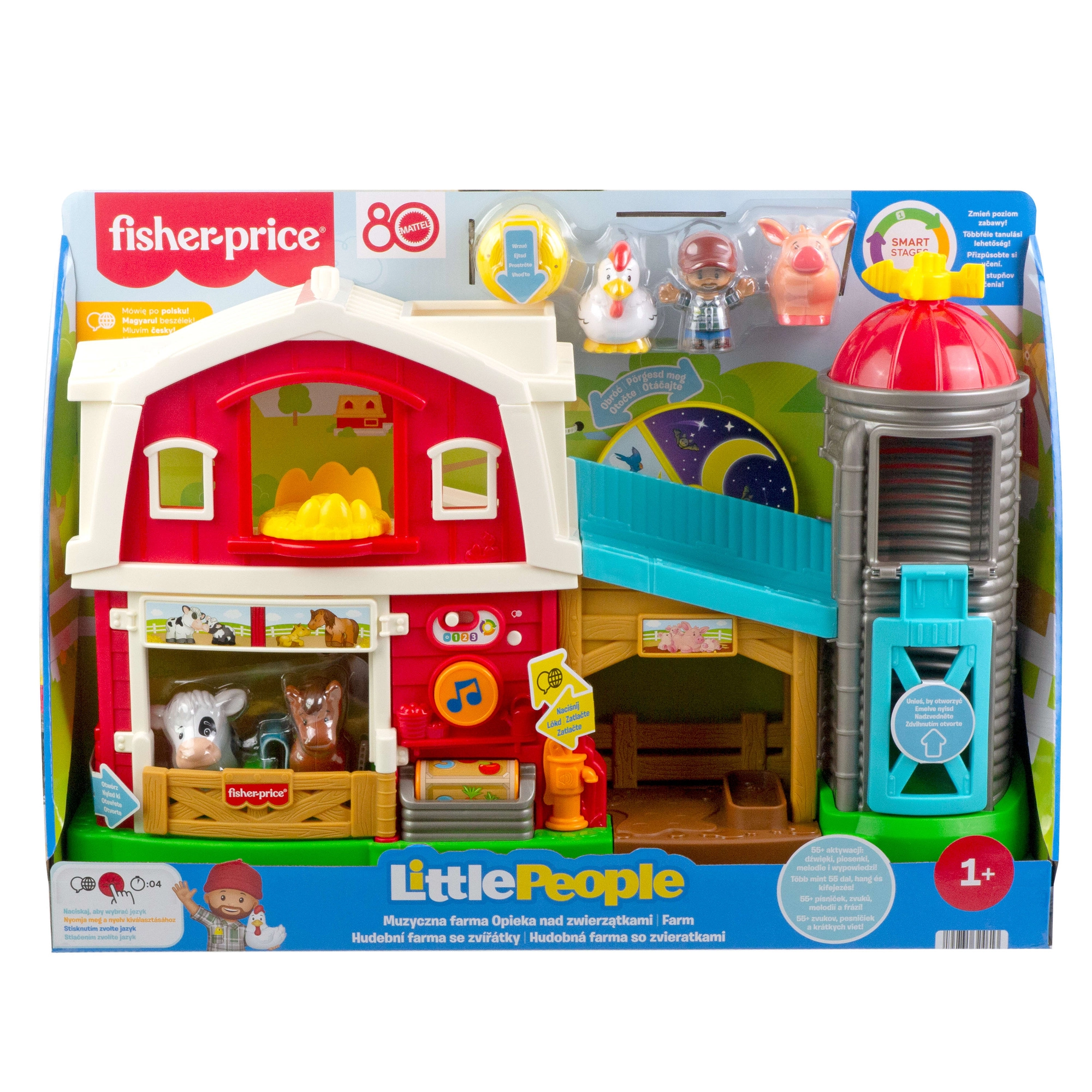 Avastage maaelu võlu Fisher‑Price’i Little People interaktiivse komplektiga. See värviline kahekorruseline talu koos siilo, loomabokside ja rajaga pakub 55+ heliaktiveeringut, 3 õpitaset ja mitmekeelse režiimi (ET, PL, HU, SK, EN). Toetab peenmotoorikat, fantaasiat ja empaatiat tänu realistlikele helidele, lauludele ja loomade eest hoolitsemise tegevustele.