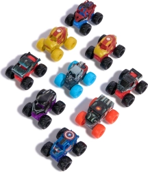 MONSTER JAMi ja MARVELi maailma ühendus toob erakordse kolmest mini-sõidukist koosneva komplekti, mis paistab silma superkangelaste ikoonilise välimuse, stiilsete velgede ja massiivsete rehvidega. Kompaktsed mõõdud sobivad ideaalselt kodusteks võistlusteks, rampideks ja trikkideks – ning kutsuvad samas kollektsiooni laiendama.