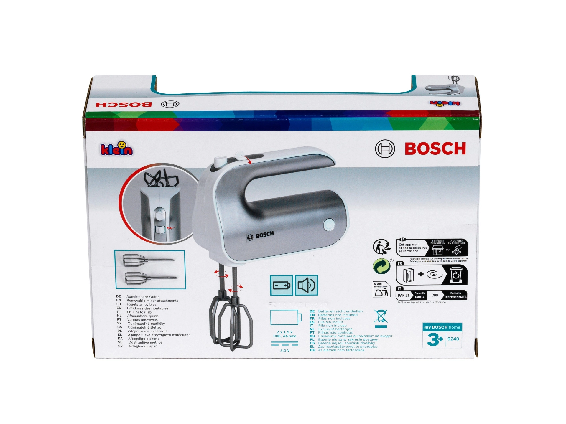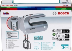 Paku lastele lõbu nagu päris köögis. Litsentseeritud BOSCH mikser hõbedases viimistluses matkib tõelist seadet: nupu vajutamisel pöörlevad visplid ning liuglüliti imiteerib kiiruse reguleerimist. Tänu eemaldatavatele otsikutele omandavad lapsed ka harjumuse hoida korda.