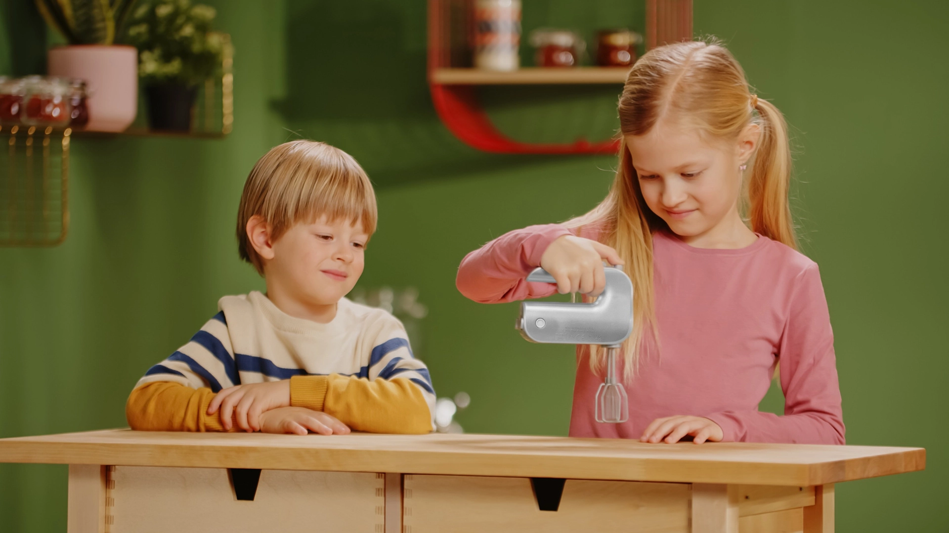 Nupu vajutamisel hakkavad visplid pöörlema ja matkivad tõetruult päris käsimikseri tööd – lõbu ja autentsus ühes.