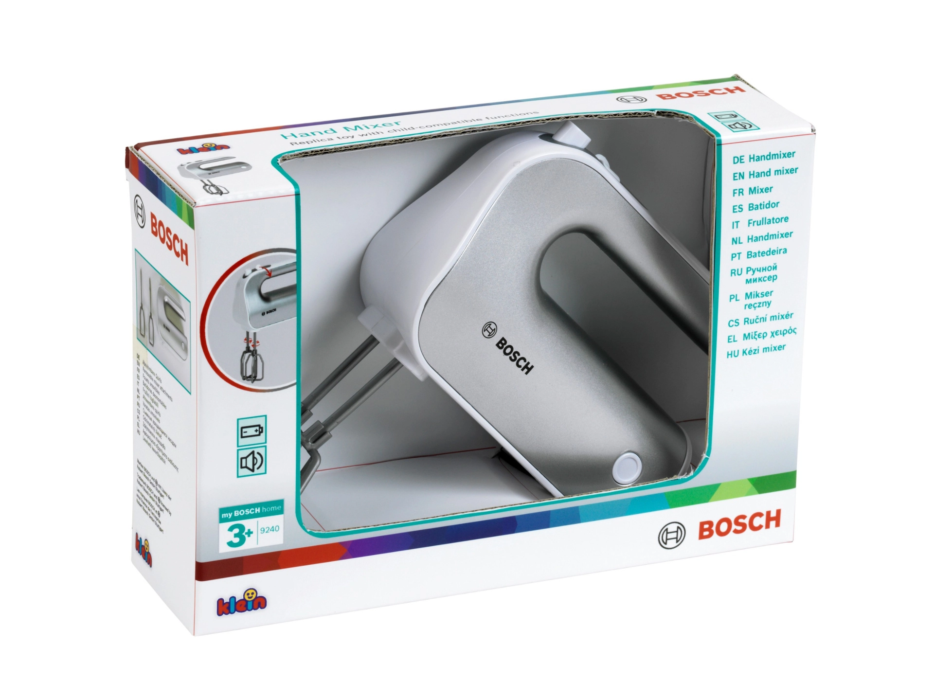 Realistlik laste käsimikser BOSCH kaubamärgilt Klein rõõmustab väikseid kokkasid tõetruu välimuse ja funktsioonidega. Sellel on pöörlevad visplid, kiiruselüliti ja eemaldatavad otsikud veelgi ehedama mänguelamuse jaoks. Kerge ja ohutu konstruktsioon kvaliteetsest plastist on ideaalne laste kätele.
