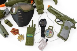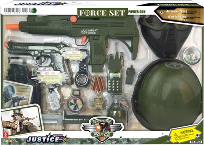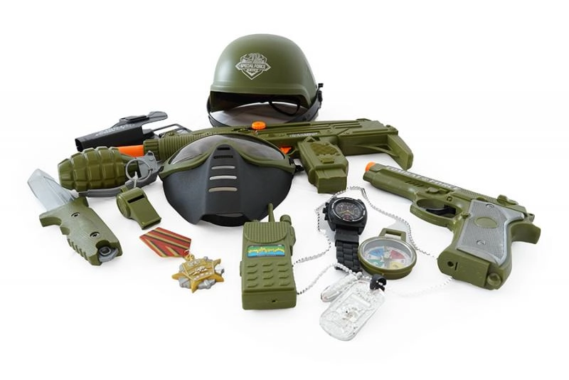 Paku lastele põnevat tegevuslikku seiklust täieliku sõjaväekomplektiga, kuhu kuuluvad kiiver, püstol ja rikkalik lisavarustus realistlikuks sõjamänguks. Komplekt arendab loovust, rollimängu ja fantaasiat ning sobib suurepäraselt väikestele avastajatele. Püstoli efektid töötavad 2× 1,5 V AG13 patareidega (ei kuulu komplekti).