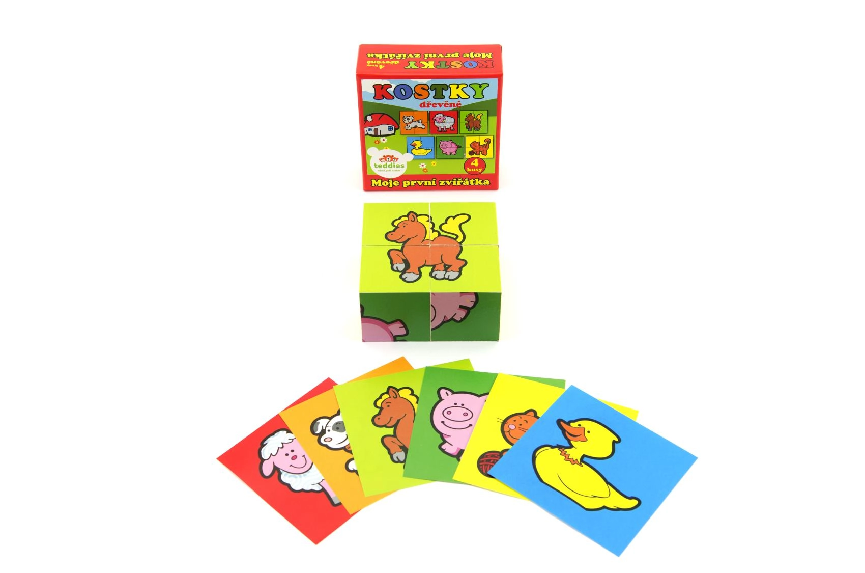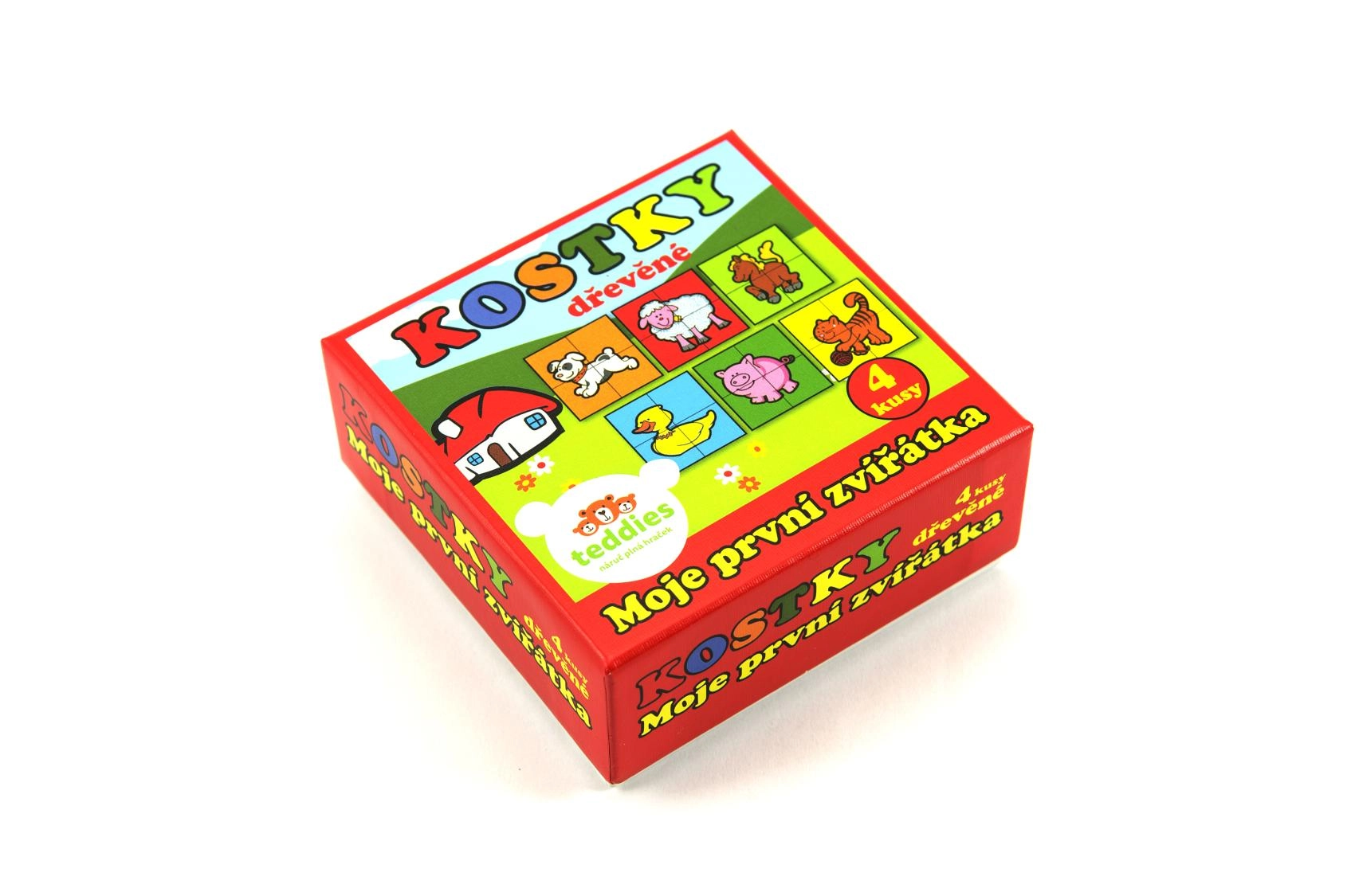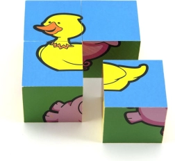 TEDDIES kaubamärgi puidust pildikuubikud Minu esimesed loomad on suurepärane valik esimesteks pusleteks. Neli kvaliteetset puidust kuubikut praktilises pappkarbis võimaldavad kokku panna kuus erinevat koduloomade motiivi. Lapsed naudivad nendega nii piltide kokkupanekut kui ka tornide, kindluste või loomade tarade ehitamist.