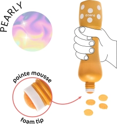 DJECO vahust vildikad pärliläikega on loodud väikestele kunstnikele. Tänu laiale vahust otsale kantakse värv ühtlaselt, ei tilgu ning on kergesti mahapestav nii nahalt kui ka enamikelt tekstiilidelt. Õrn pärlefekt lisab igale pildile võluva sära.