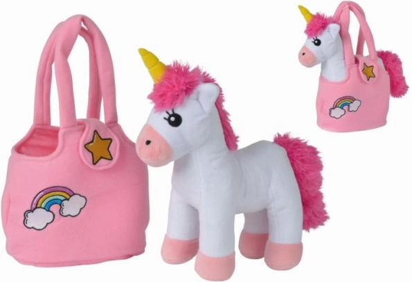 See armas plüüdsest ükssarvik tuleb koos käekotiga mugavaks kaasaskandmiseks ning on ideaalne mänguasi lastele ja fantaasialoomade austajatele.