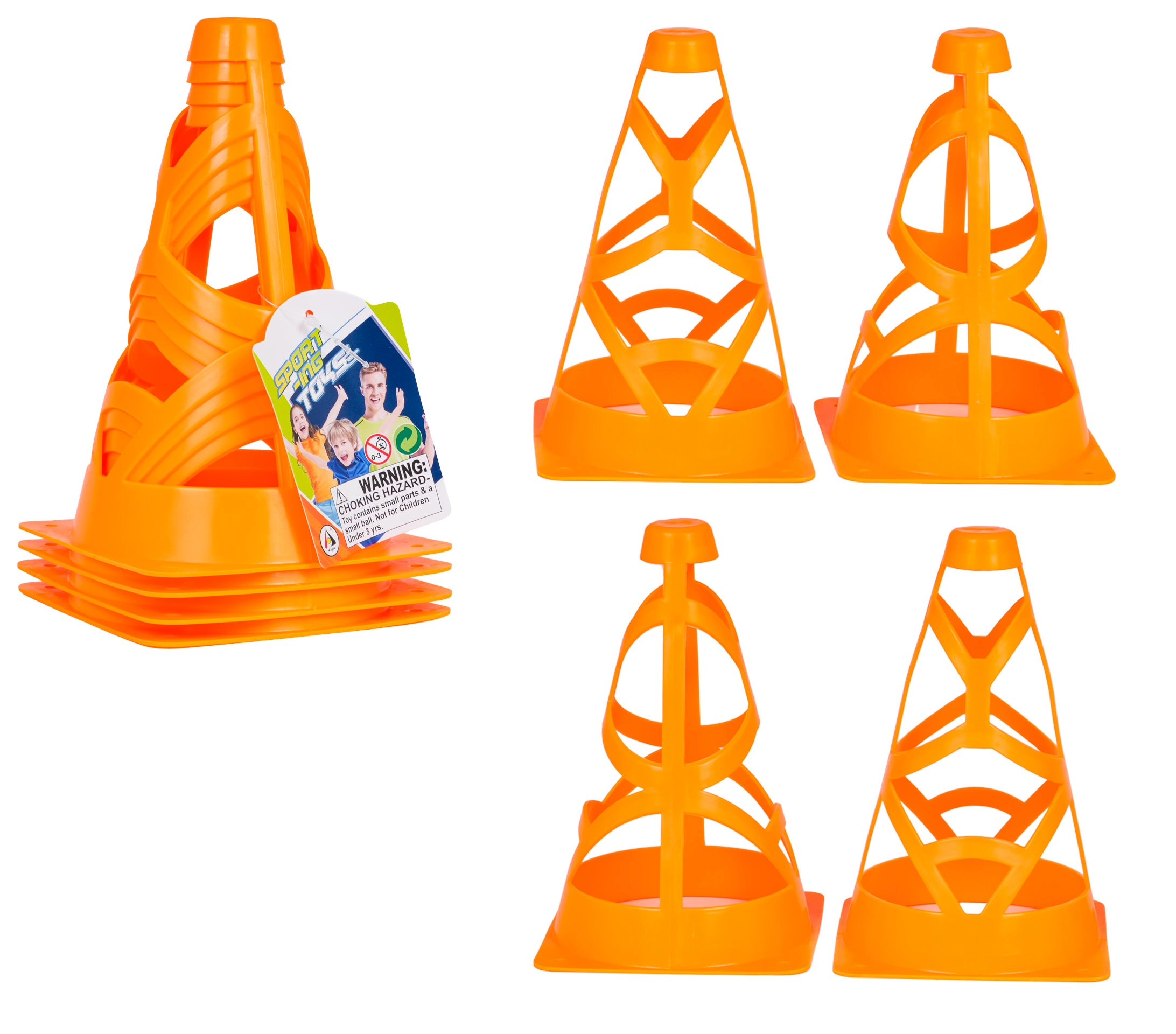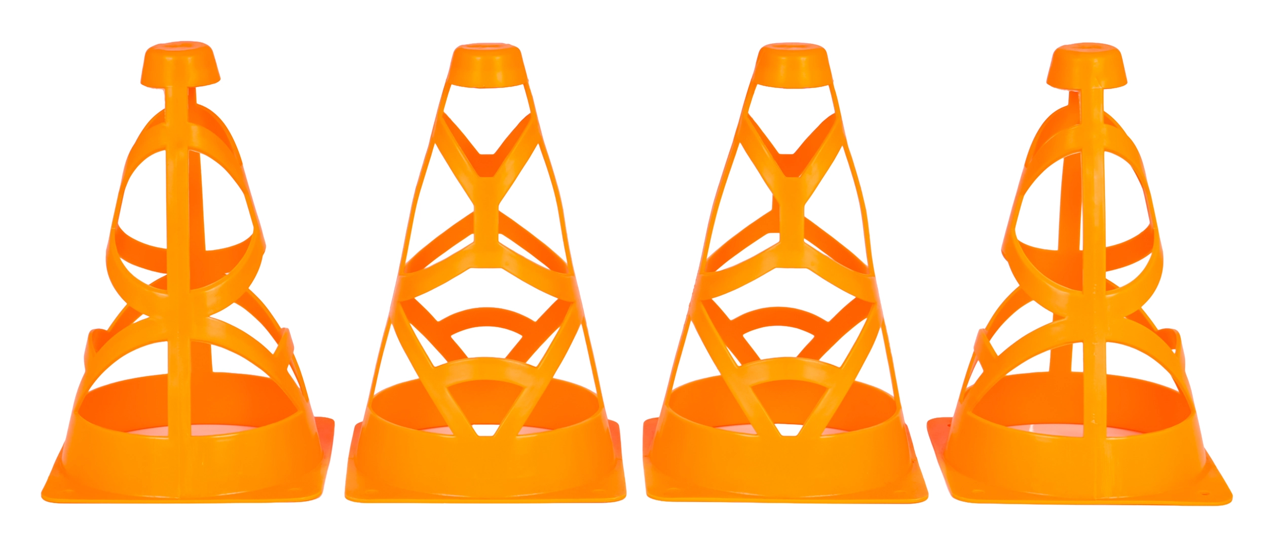 Komplekt neljast oranžist koonusest lastele alates 3. eluaastast ja täiskasvanud sportlastele. Need on kerged, virnastatavad ja erksa oranži värvi tõttu hästi nähtavad. Avatud konstruktsioon koos ankrukohtadega tagab stabiilsuse ka tuulega. Sobivad jalgpallitreeninguteks, agility-harjutusteks ja tsoonide märgistamiseks platsil või hoovis.
