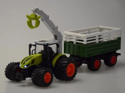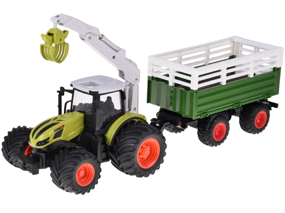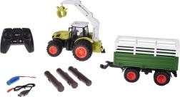 See detailselt viimistletud RC traktor ikoonilises rohelises värvitoonis rõõmustab suurte sügava mustriga rehvidega parema haarduvuse jaoks ning vastupidava haagisega lasti veoks. Käsitsi juhitav poom pöörleb 360°, seda saab tõsta ja langetada ning haarats avaneb ja sulgub käsitsi – ideaalne kaasasolevate palkide laadimiseks.
