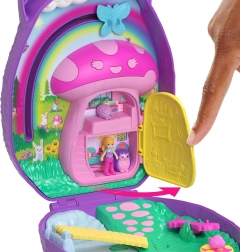 Avasta taskusse mahtuv võlumaailm Polly Pocketi kompaktse käekotiga Siilide perekond – kaasaskantav mängukomplekt mikronukkude, loomakeste ja paljude lisadega. Ava armas siilikujuline kott ja naudi kahekordset lusti: maagiline aed ja loomabeebi tuba. Lapsed saavad proovida interaktiivseid elemente, nagu väikese siili „söötmine“ ja tema „märg“ mähe, liikuv kiik, seenekujuline majake ning võimalus taevas ringi lennata tänu liugmehhanismile.