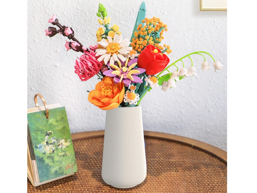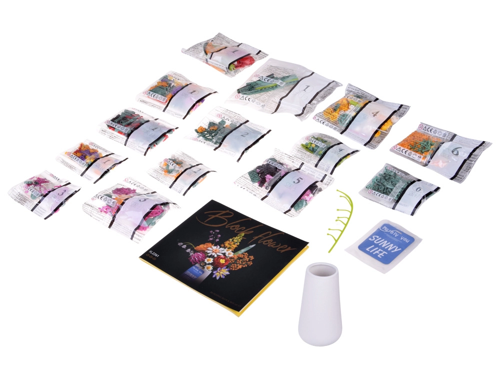 Ehituskomplekt on jaotatud numberdatud kottidesse ning varustatud pildilise samm-sammult juhendiga, sobides nii kogenud kui ka algajale ehitajale. Valmis buketi kõrgus on ligikaudu 30 cm, sobib suurepäraselt lauale, riiulile või kummutile ning pakub tunde lõõgastavat ja loovat tegevust.