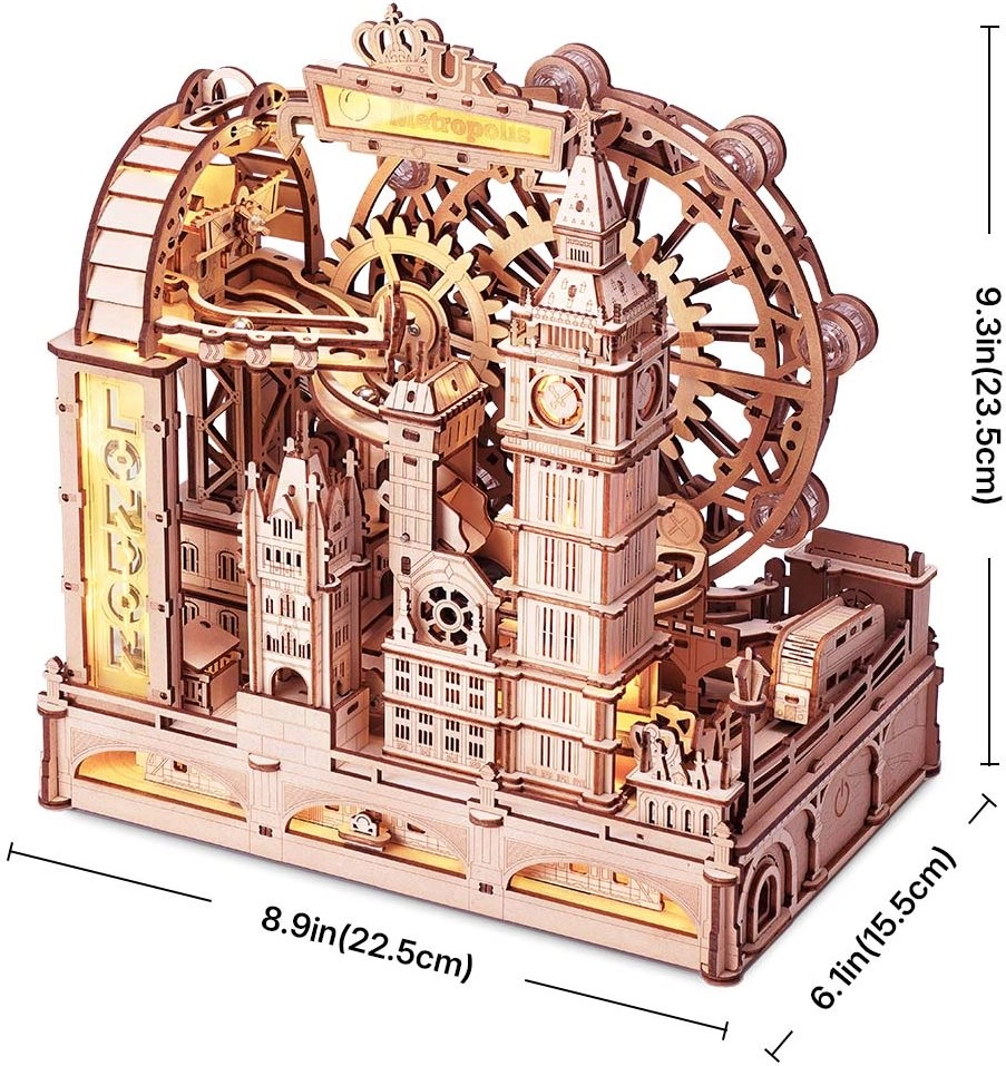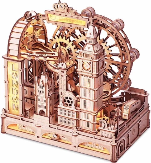 Avasta ikoonilised Londoni vaatamisväärsused elegantses 3D puidust pusles. Mudel ühendab Big Beni, Tower Bridge’i ja London Eye’i dünaamilise kuulirajaga, kus metallkuulid vuhisevad mööda rampe ja tunneleid gravitatsiooni ning võimsa mootori abil. Ei puudu ka sümboolsed Kroonijuveelid – kõik rõhuga täpsel teostusel.